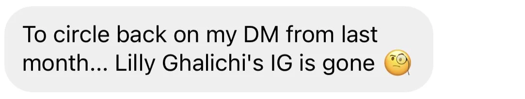I can still see her IG…am I missing something? https://instagram.com/lillyghalichi